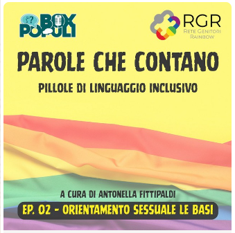 Prosegue, nella rubrica In ascolto , il podcast Parole che Contano – Pillole di linguaggio inclusivo , creato e curato da Antonella Fittipaldi di Box Populi in collaborazione con Rete Genitori Rainbow.