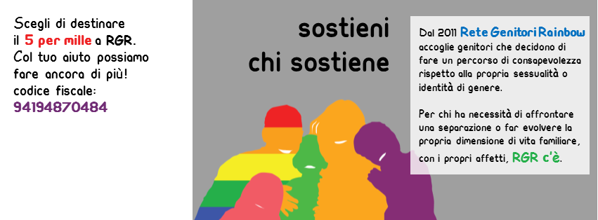 Sostieni con una donazione le iniziative di RGR, contribuirai così all’ampliamento della offerta di iniziative e servizi di Rete Genitori Rainbow.